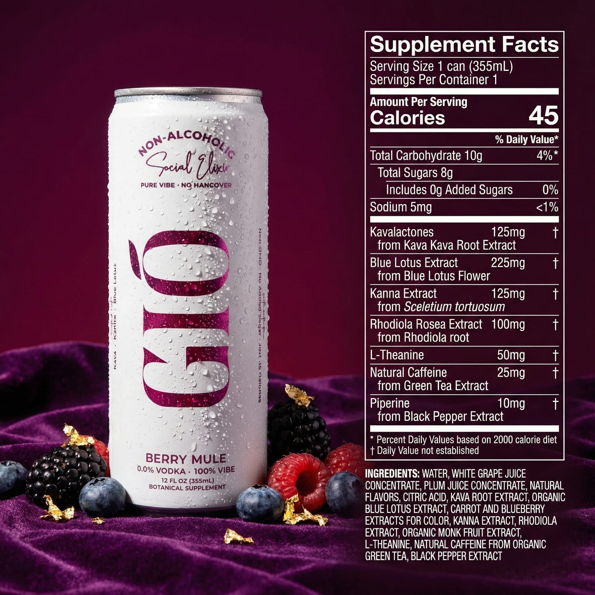 - BERRY MULE – Tart berry vibrancy sparked by real ginger heat. This isn’t your sweet mocktail — it’s a punchy, electric combination of wild berries.
